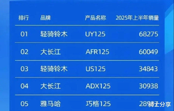 在2025年前半年中,巧格125凭借28937辆的成绩,位居同排量车型销售榜第5位,硬是凭借一己之力为合资雅马哈争夺了一席之地,如果没有这款车通路五虎将极有可能四缺一。