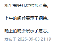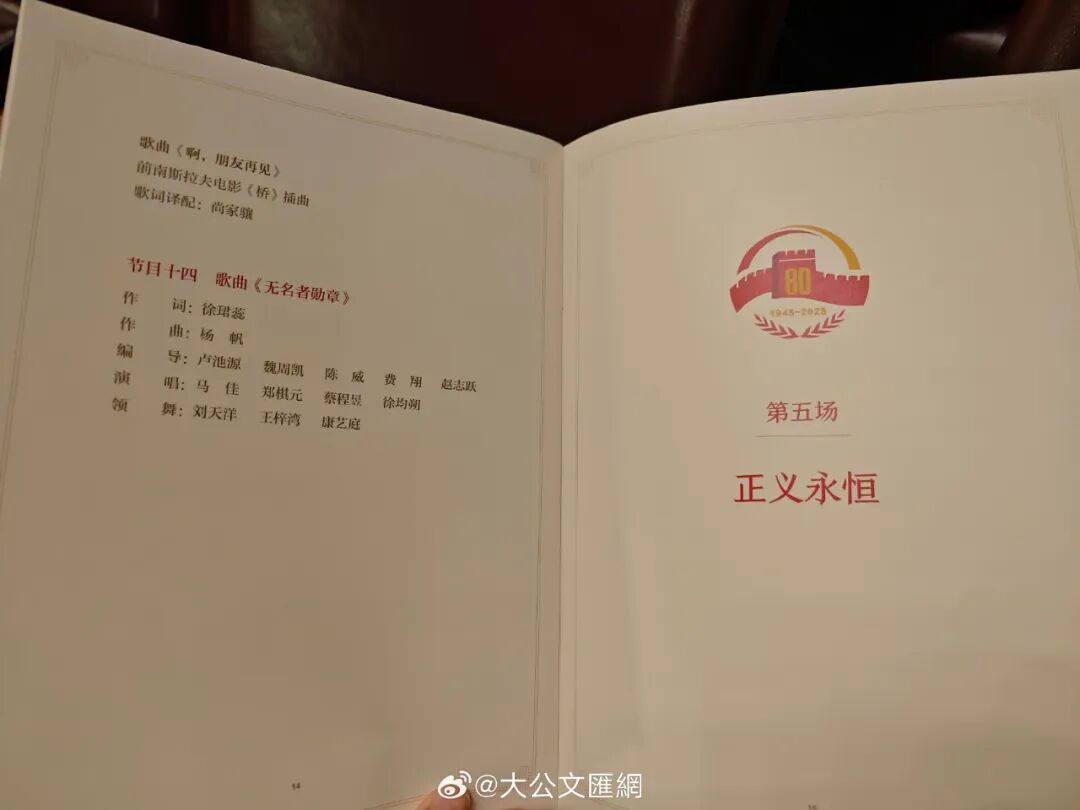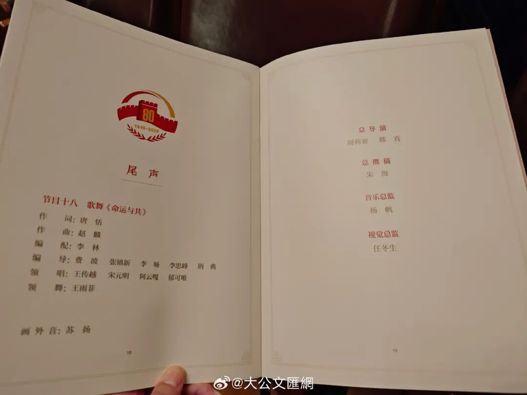 9月3日晚,纪念中国人民抗日战争暨世界反法西斯战争胜利80周年文艺晚会《正义必胜》在北京人民大会堂举行。